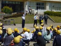 その後、スクールサポーターの方のお話、代表児童による不審者対応の実演がありました。「いかのおすし」を行うことが大切だと教えていただきました。