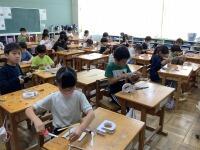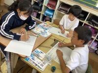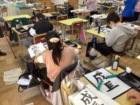 書写で水筆に挑戦しました。真剣に取り組んでいます。