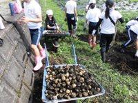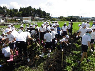 土の中に手を入れると,結構立派なジャガイモがいくつも掘り出すことができ,大歓声でした。