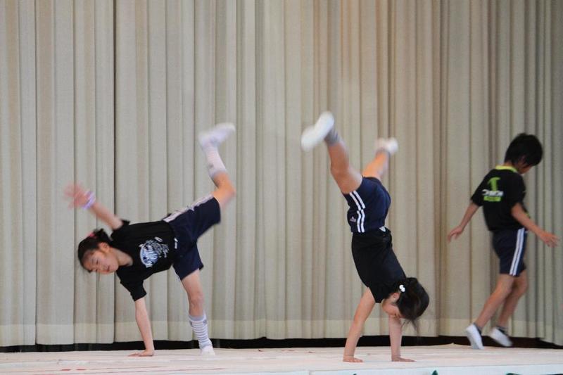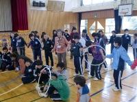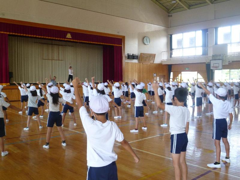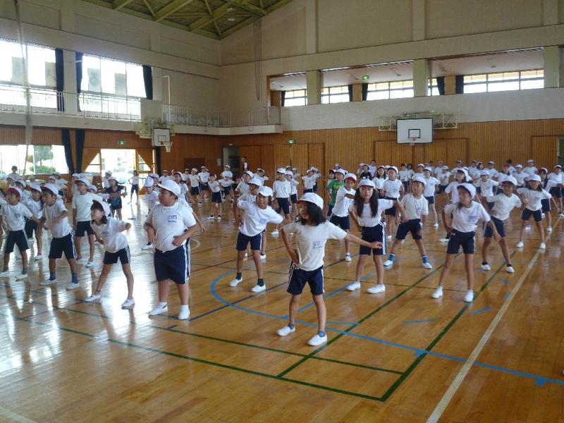 3・4年生合同で振り付けを覚えています。「エイトレンジャー」になりきって練習中