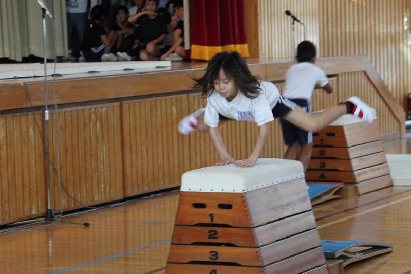 体育では、「マット運動」と「跳び箱運動」の練習を重ねて、発表しました。