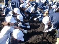 今日は,気持ちのよい晴天のもと,4年生がサツマイモほりを行いました。土の中から顔を出すサツマイモを見つけては,みんな大はしゃぎでした。