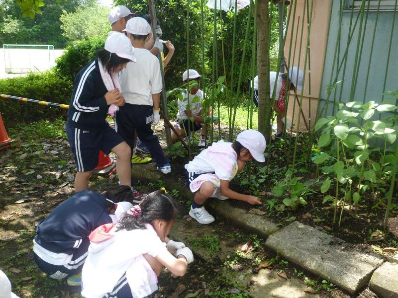 「もっと大きく元気に成長してね」と、心をこめて草むしりです。