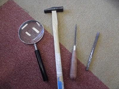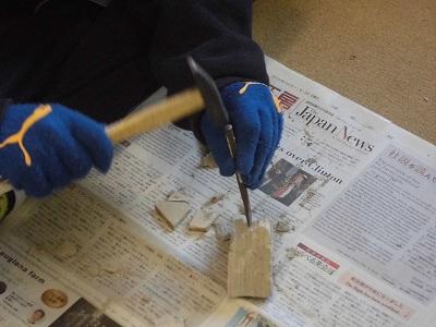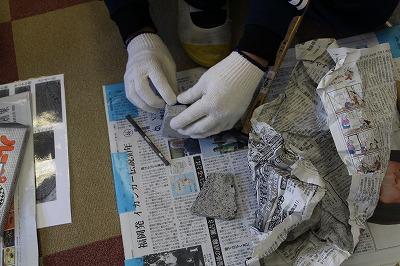 して作業をします。まずは,道具と石が配られました。
