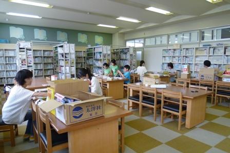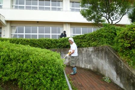 校庭の整備、除草、草刈りなど手分けして行われました。また、室内は、本の修繕、トイレ掃除などを行いました。