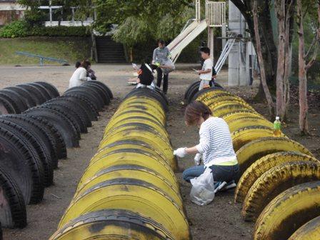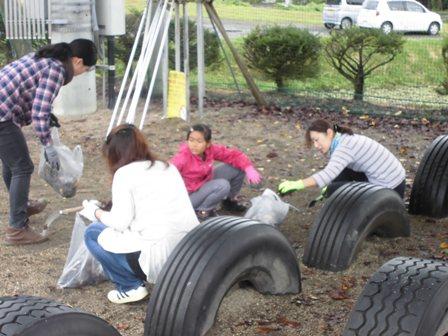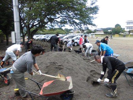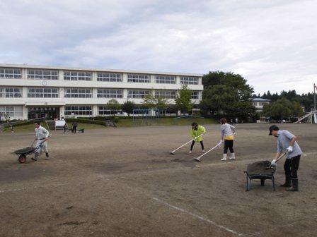 今回は運動会に向けて校庭の除草や整備,トイレ掃除や樹木の剪定などを