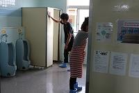 メダカ池・校庭の側溝・草刈り・除草・トイレ・本の修繕に分かれて清掃を