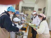 そして親子給食当番体験では、保護者に配膳を体験していただき、一緒に給食を食べました。