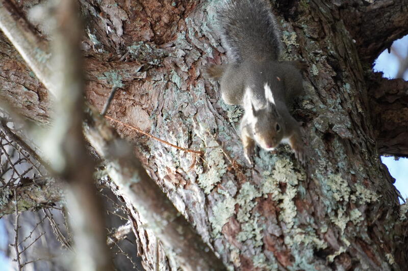 木に登り、しっぽを立てて走り回るリスの可愛いこと・・