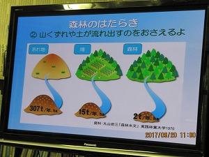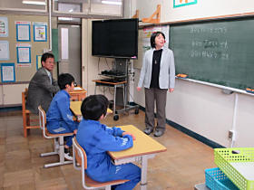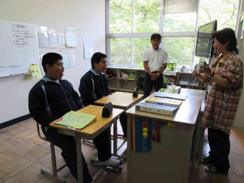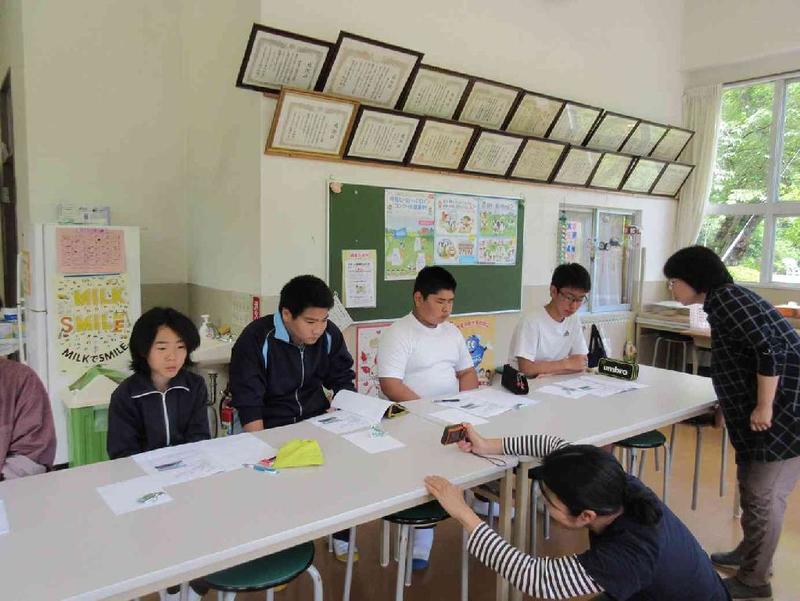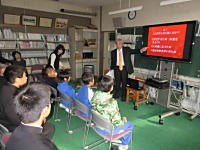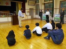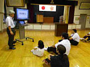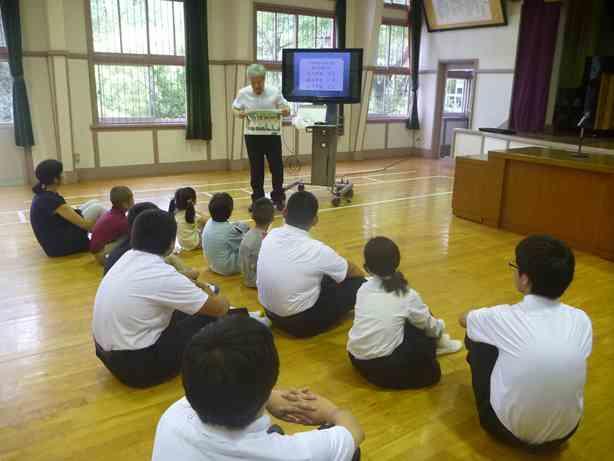 薄井先生お一人の発表で、絵を見せながらクイズを出してお話が始まりました。児童生徒に見せながらユニバーサルデザインの意味と障害のある方に対する配慮や望ましい行動について、わかり易く説明されていました。優しい心の溢れる三依の子どもたちは、真剣な表情で頷きながら聞いていました。
