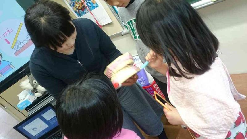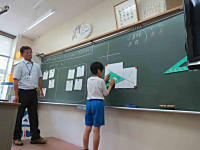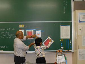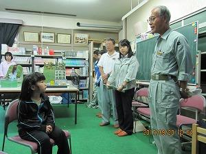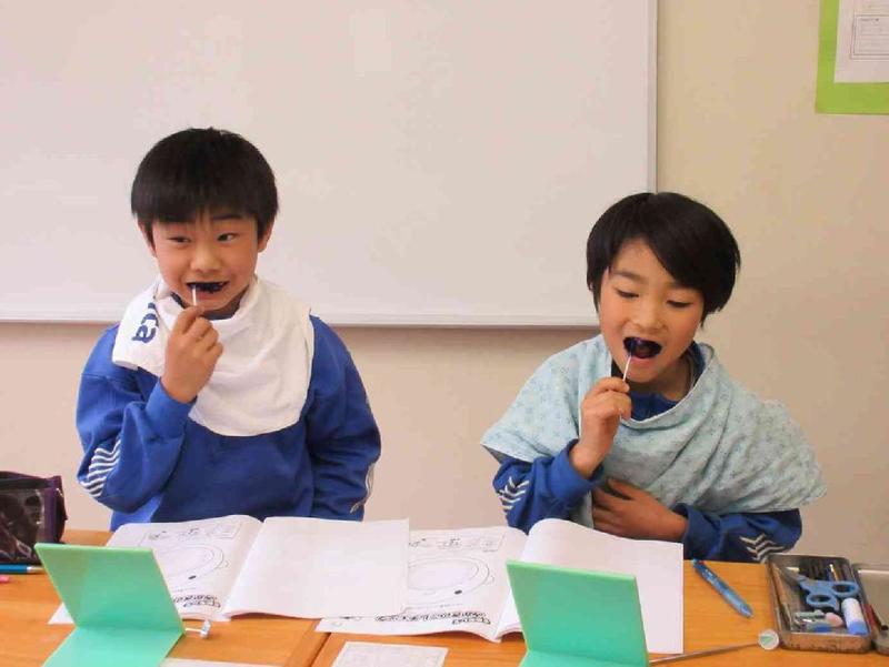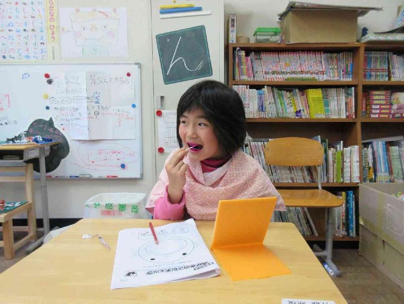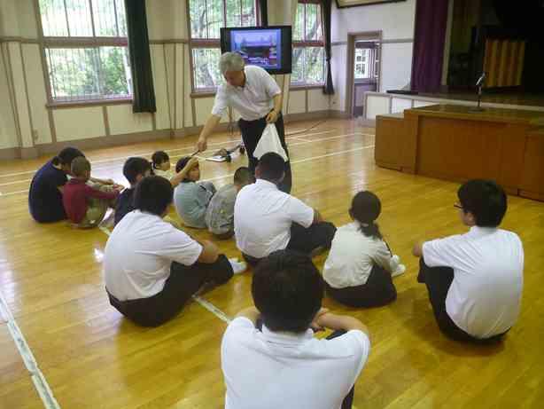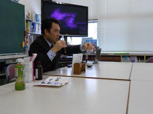 薬物についてのお話は小学1年生には難しいと思われますが、始めに薬の飲み方についての実験をしてくださり、児童も職員も興味津々で観ていました。
