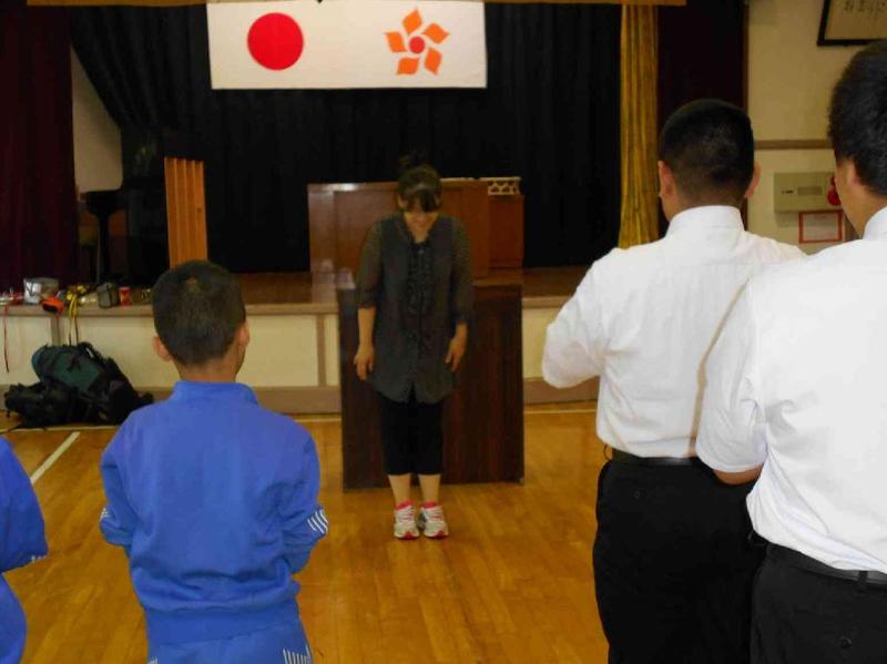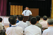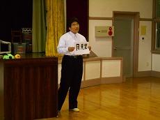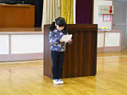 今回は、先生方2名の発表でした。はじめの方はご自分の名前について思い出を混ぜながら話され、子供たちに自分の名前を大切にしてほしいと呼びかけました。またもう一人の先生は、東北の被災地に行ってきた経験を話され、復興があまり進んでいないことや報道されていない様子など、実際に自分の目で見る大切さを訴えていました。表彰も行いました。