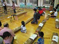 恒例の邦楽スクールコンサートが実施され、和久先生方(他2名)の毎年違った素晴らしい演奏を聴かせていただきました。また、尺八やお琴に子供たちと共にふれさせていただき、邦楽の楽しさと難しさを体験いたしました。それから、和久先生に師事している地元三依の阿部さんも一緒に演奏されました。阿部さんのこれまでの努力について和久先生から伺い、とても印象的でした。