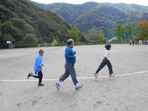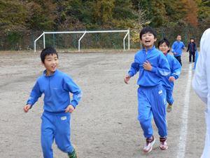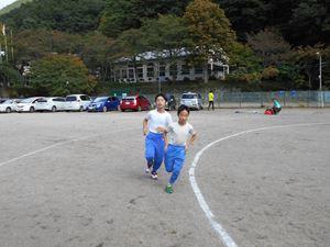 このところ、寒い日や雨の日が多かったのですが、この日は朝から良い天気で、色づいた山々をバックに児童生徒が力走しました。