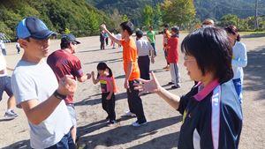 10月25日(水)に高齢者ふれあいグラウンドゴルフを行いました。毎月行っている三依地区のグラウンドゴルフ大会に、児童生徒・教員も参加させていただきました。子どもたちは、6つの班に分かれてプレーを楽しむ中で、打ち方のコツを教わったり、学校の様子を紹介するなどして交流を深めることができました。