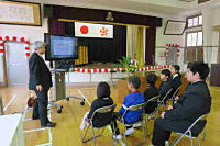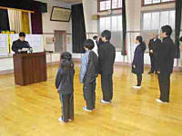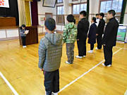 寒い朝にもかかわらず,子供たちの引き締まった表情と力強い発表が、そのことをすっかり忘れさせてくれました。校長からは、「自立」というテーマで、自分から進んで学習にも取り組むよう子供たちに話をしました。また今回からは、代表だけでなく全員の児童・生徒が今年の抱負を発表しました。校歌を歌う一人一人が、とても輝いて見える式であったと思います。