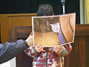2年生児童は、家庭で飼っている猫について、自分で撮影してきた写真を使いながら丁寧に説明しました。