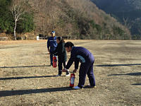その後、児童生徒は消火訓練を行い、消火器の使用法を学びました。