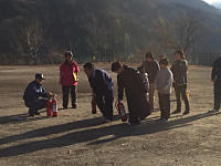 11月17日(木)避難訓練を実施しました。火災報知器作動、初期消火、緊急放送、緊急避難、通報を一連の行動として訓練しました。基本的な決めごと以外は声を掛け合ってその場で分担するなど、実際の非常時への対応力向上を目指して行いました。訓練は日光消防署川治分署の3名の職員の皆さんにご指導いただき、緊急避難以外に水消火器による消火訓練、煙体験、通報訓練を行いました。児童、生徒、職員の全員が、命に関わる活動として真剣に取り組みました。