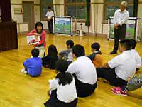 地域の高齢者の方とふれあいながら、グランドゴルフを行いました。子供たちと職員含めて5班に分けて行いましたが、高学年児童は何度目かになるのでとても上手にプレーしていました。高齢者の方の熟練の技を拝見したり、また子供たちに教えてくださったり、一日楽しい歓声がこだましました。