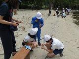 臨海自然教室2日目の活動は、日の出を見ながらの「砂浜散歩」、午前中の活動は「塩作り」、午後の活動は「モトクロス」、夜は「サンドブラスト」を行いました。活動と活動の合間の時間には、海の展示室の見学や海の図書館などで読書をして過ごしました。