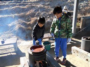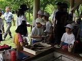 写真は塩作りの様子です。火の点け方から薪のくべ方など、指導の先生からお褒めの言葉をいただきました。