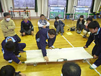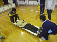 中学2年教室のストーブから火災が発生したと想定し、避難経路の確保や避難場所の確認など行いながらの訓練でした。