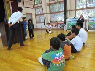 10月7日(金)アイスバックスの関係者の方をお迎えして、親子運動教室を開催しました。保護者の方の参加は少なかったのですが、秋空の下、児童生徒・教職員・こじか教室の方々、みんな笑顔で活動しました。ボールを使っての感覚テストは、教職員にも好評で、体育で活用させていただいています。子どもたちも昼休みなどに取り組んでいます。スポーツの秋にふさわしい行事でした。