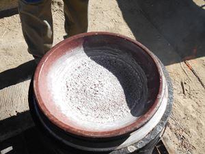 ・ゴミをとりながら海水を蒸発させます ・塩のできあがりです