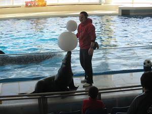 3日目は自然の家を退所し、アクアワールド大洗水族館を見学しました。イルカショーやアシカショーを観たり、館内を自由に見学したりしました。昼食のお弁当を受け取り、雪の心配があったため、予定より1時間早い12時にバスに乗り込みました。3日間、どの活動にも2人で協力し、他校の児童とも交流し楽しく過ごすことができました。