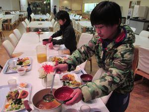 臨海自然教室の出発日には、前々日からの降雪積雪によりバスの到着が遅れ、予定より15分遅れの出発となりました。道路状況も悪く、とちぎ海浜自然の家に到着したのは、予定より1時間遅れの11時54分でした。到着してすぐに館内の使用について説明を受け、説明後自分たちの宿泊する部屋に移動し、ベッドメーキングをしました。
