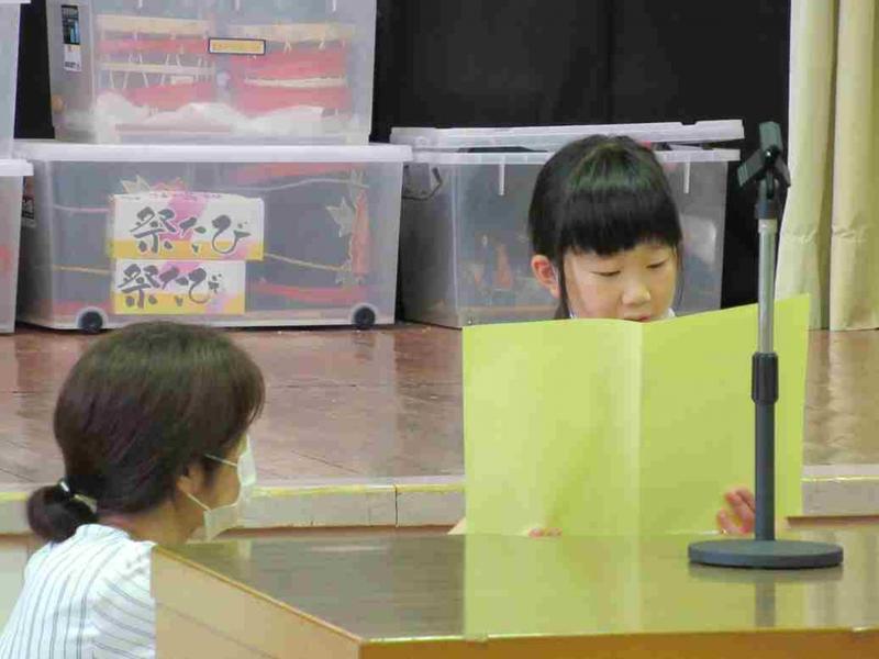 児童生徒のスピーチでは、6年生が国語の時間に学習した谷川俊太郎さんの詩「生きる」を朗読してくれました。身振り手振りを添えたり視線を遠くに伸ばしてみたり…身体表現を交えた朗読に、心が洗われる素敵なひとときを過ごしました。