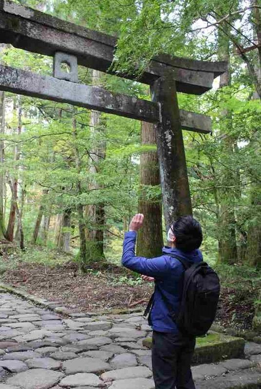 馬返しの地名の由来や黒髪平から見える「風穴」と弘法大師のエピソード、「日光」という地名の由来へと、興味深いお話を聞きながらいろは坂を上っていきます。