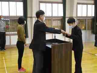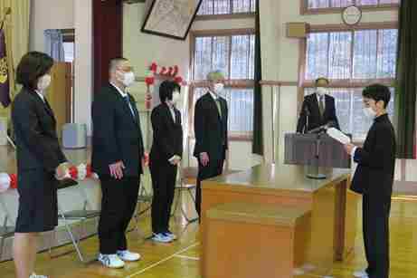 本年度の卒業生は、中学生1名、小学生1名の2名です。感染症予防のため、全員マスク着用などの配慮の上、在校生5名、保護者の皆様、教職員、PTA会長の出席で行われました。