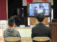 講師の先生が東京、生徒が自宅、教員が学校にいながら映像を交えて講話を行いました。