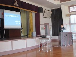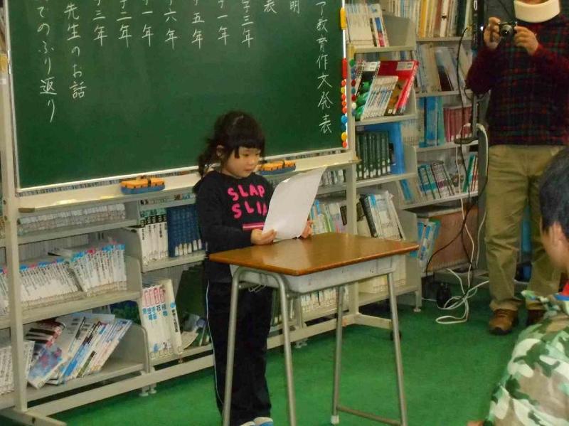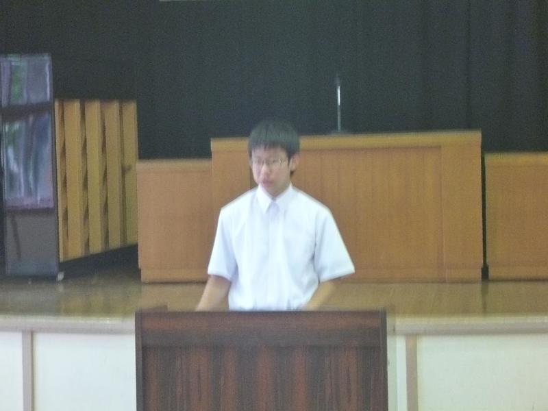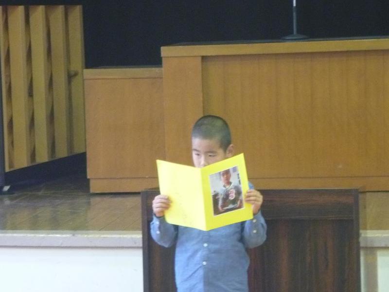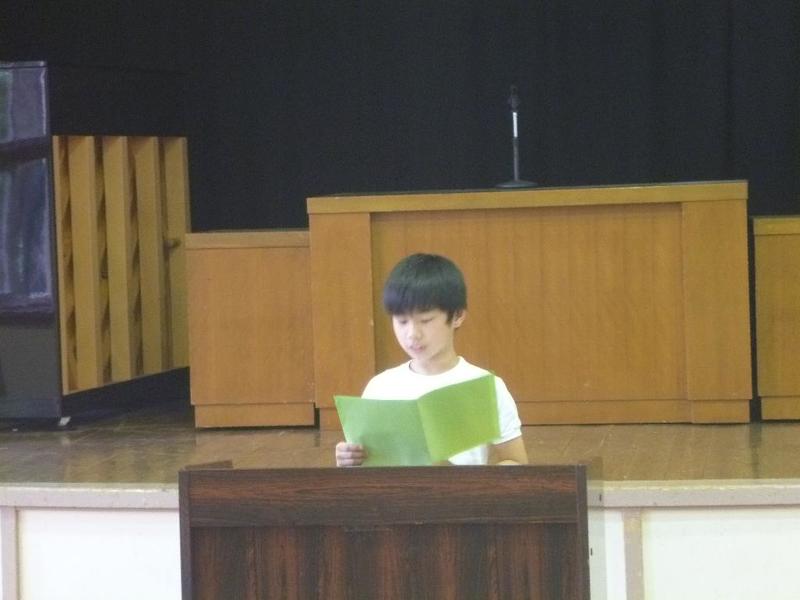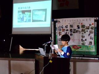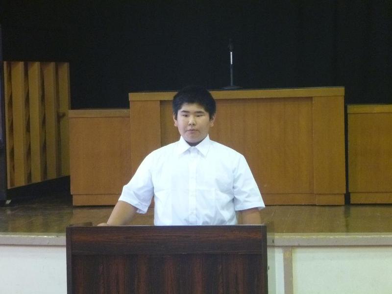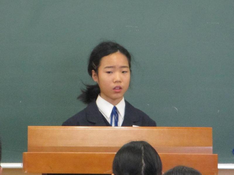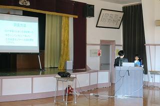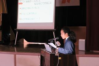 今回は、先生2名の発表でした。はじめの方はご自分の名前について思い出を混ぜながら話され、子供たちに自分の名前を大切にしてほしいと呼びかけました。またもう一人の先生は、東北の被災地に行ってきた経験を話され、復興があまり進んでいないことや報道されていない様子など、実際に自分の目で見る大切さを訴えていました。表彰式も行いました。