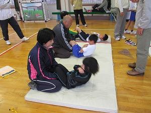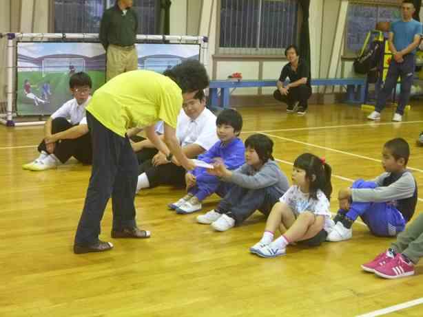 10月7日、秋晴れの空の下、親子運動教室がありました。保護者の方や、こじか教室(地域の方々の学校ボランティアさん)も参加して、楽しいひとときを過ごしました。講師の方はアイスバックスの方とその関係者のお二人。笑顔いっぱい、汗いっぱいで校庭中を駆け回ったり、ボールで体のバランスがとれているかどうか確認したり、とっても有意義な2時間でした。