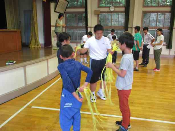全体交流 体育館でのびのびダンス、ひたすらオセロなどを行いながら交流しました。