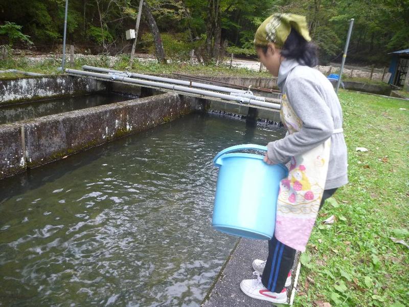 今年度は、地元の「三依渓流釣り場」で、お客様への食事の準備、配膳や、養殖所の魚の餌やりの仕事を
