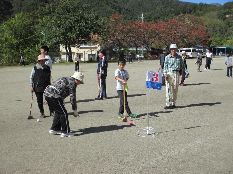 10月25日(水)に高齢者ふれあいグラウンドゴルフを行いました。毎月行っている三依地区のグラウンドゴルフ大会に、児童生徒・教員も参加させていただきました。子どもたちは、6つの班に分かれてプレーを楽しむ中で、打ち方のコツを教わったり、学校の様子を紹介するなどして交流を深めることができました。