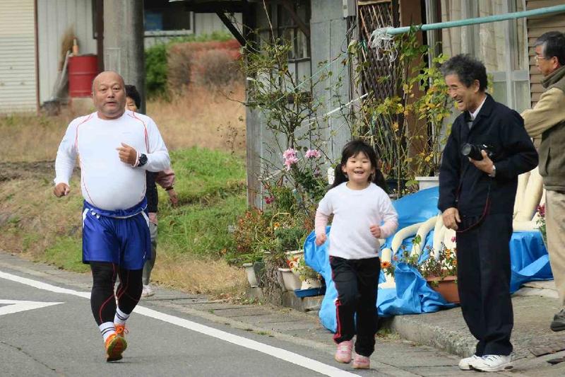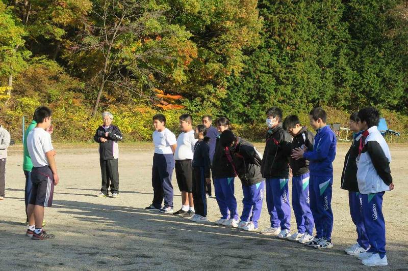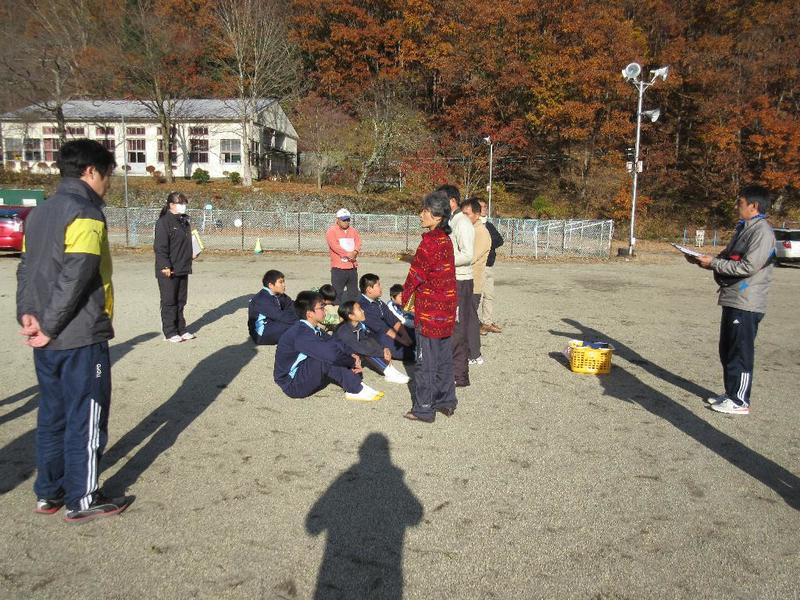 このところ、寒い日や雨の日が多かったのですが、この日は朝から良い天気で、色づいた山々をバックに児童生徒が力走しました。