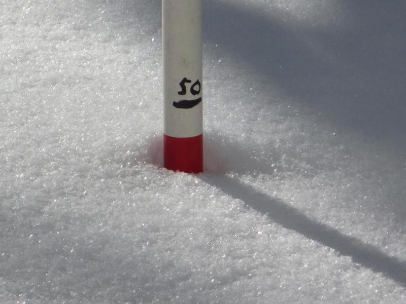 今日は少し溶けたかもしれませんが、校舎前のポールで50cm!!!。