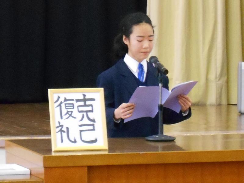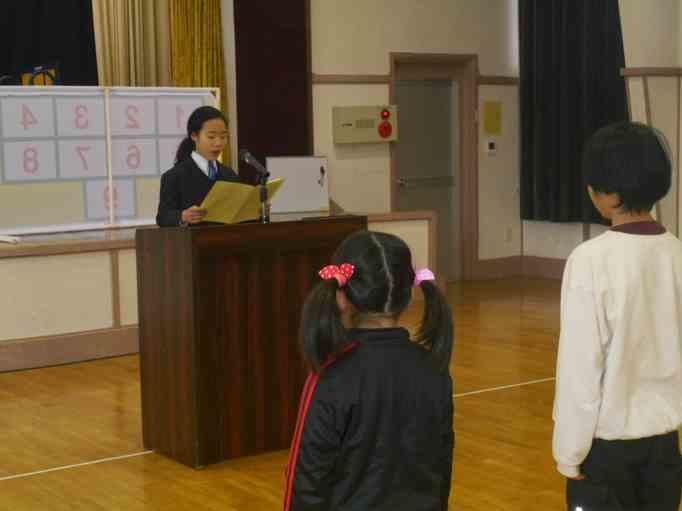 児童生徒代表の2学期の反省では、今学期の学習の成果と3学期の抱負が力強く述べられました。