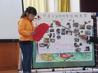 次は、小学生の発表です。低学年は生活科見学のまとめ、高学年は自然体験活動のまとめでした。