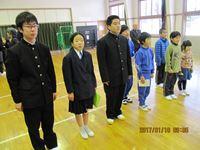 寒い朝にもかかわらず,子供たちの引き締まった表情と力強い発表が、そのことをすっかり忘れさせてくれました。校長からは、「自立」というテーマで、自分から進んで学習にも取り組むよう子供たちに話をしました。また今回からは、代表だけでなく全員の児童・生徒が今年の抱負を発表しました。校歌を歌う一人一人が、とても輝いて見える式であったと思います。