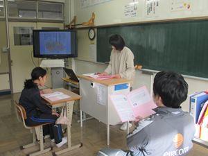 中学2年生は「エイズと私たち」を行いました。エイズという病気に偏見があり、人権教育とも関わりがあることについても触れました。