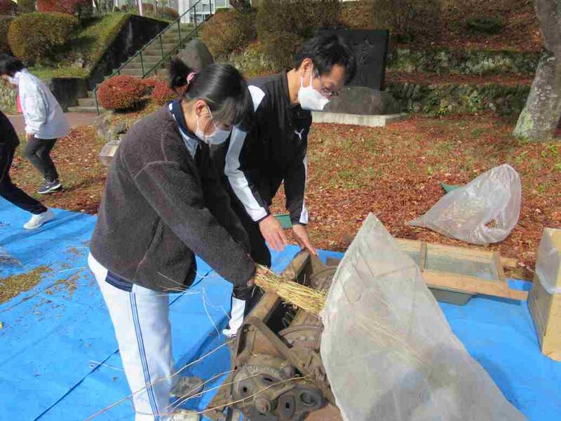 また、12月には渡邊用務員や手塚勲先生も加わり、ブランコの下に人工芝を敷きました。