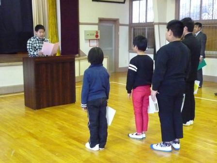 肌を刺す寒さがしみる講堂で、学年最後の学期が始まりました。校長から、映像を使った資料で、児童・生徒たちに今学期のめあてを考えさせました。そのほか、代表児童・生徒の発表があり、みな真剣な表情で聴いていました。一人一人がそれぞれの思いを胸に、いよいよ3学期がスタートです。