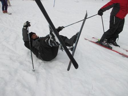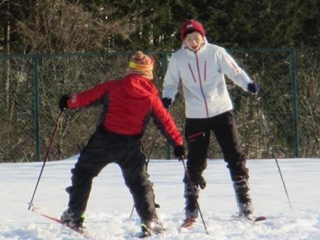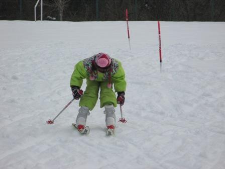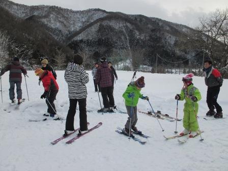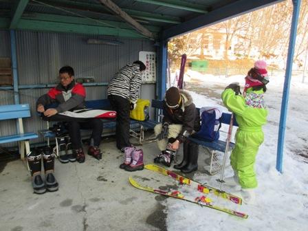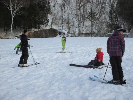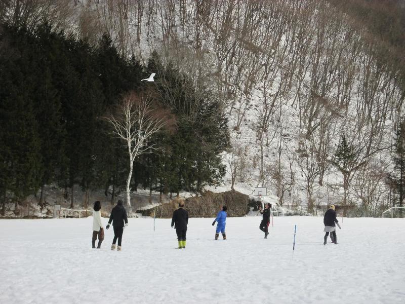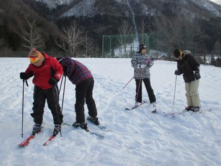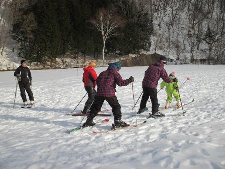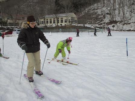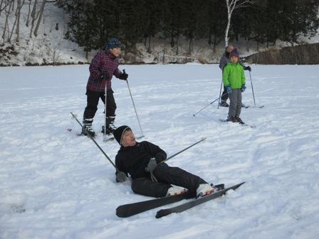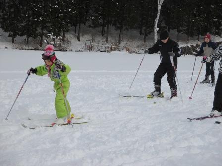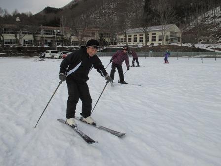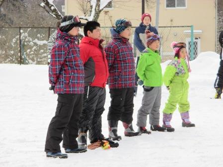 2回目で少しは慣れたかと思いきや、この校庭で行うスキー学習は体力勝負。まだスムーズに足が入らないスキーブーツにぶうつぶうつ言いながらやっと足を入れ、スケーティングの練習とリレー勝負を行いました。子どもたちの若さには、先生方はかないませんでした。1時間1時間、体力を向上させていきます。