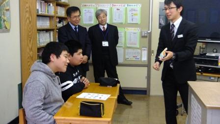 まず3校時の授業を参観していただき、次に図書室において話し合いを持ちました。学校から、本校の教育や学校生活の様子、学校評価などの説明を行った後、評議員の方々からのご質問・ご意見等を伺いながら、協議・情報交換を行いました。最後に、児童・生徒らと一緒に給食を食べていただきました。和やかな本校の様子を感じていただけたと思います。評議員の方々には、お忙しところありがとうございました。